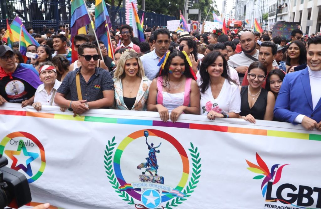 Luego de una controversia por la realizaci√≥n de la marcha del «Orgullo» organizada por la comunidad LGBTI+ en la calles del centro de Guayaquil, se realiz√≥ con varios lineamientos acordados con el municipio. En la gr√°fica la prefecta Marcela Agui√±aga se uni√≥ a la marcha.